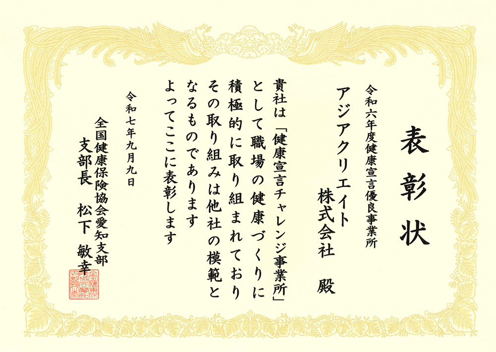健診結果を前年度と比較し改善されてる社員には、毎年表彰をしています。